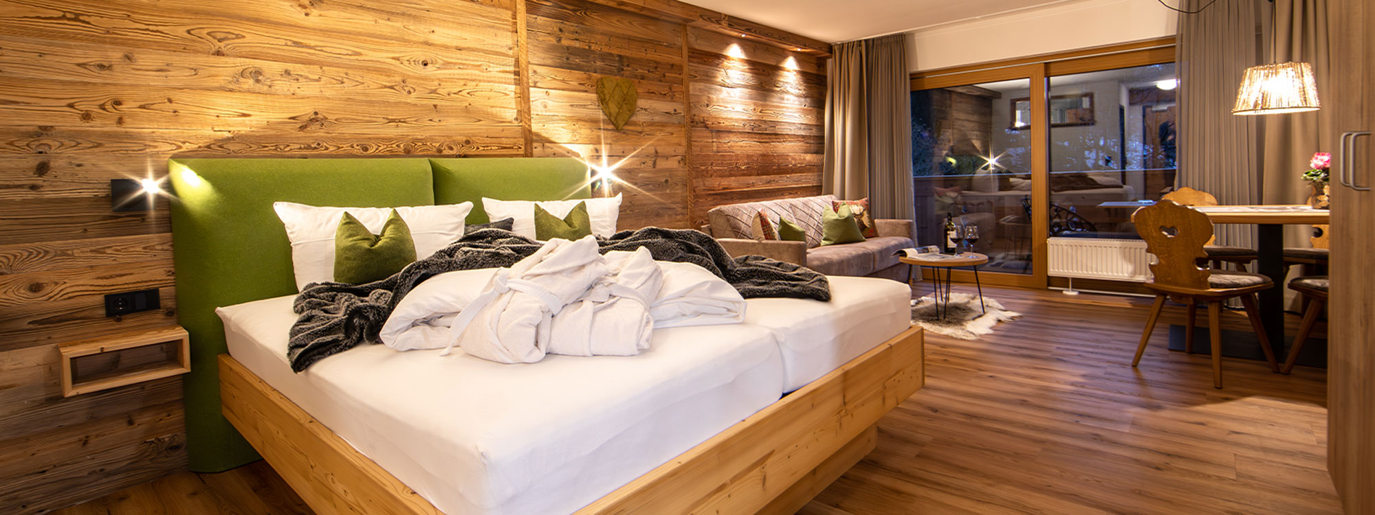 Die Einraum-Ferienwohnungen Allgäu Natur plus mit 35 qm sind im alpinen Stil eingerichtet. Die Wandvertafelung aus Allgäuer Hölzern in Verbindung mit dem Laminatboden verleihen dem Studio Apartment ein besonders warmes Wohlfühlambiente. Der kombinierte Wohnschlafraum mit Doppelbett ist ideal für einen Aufenthalt zu zweit. Eine gemütliche Eck-Couch lädt zum Kuscheln und Tagträumen ein. Bei Bedarf kann sie auch als bequemes, zusätzliches Bett für zwei Personen umfunktioniert werden. Von Balkon oder Terrasse aus eröffnet sich das eindrucksvolle Allgäuer Berg-Panorama nach Süden mit Blick in die Oberstdorfer und Kleinwalsertaler Bergwelt. Die kleine aber feine Küchenzeile ist für eine 4 Personen Belegung ausgestattet. Das Badezimmer beinhaltet Dusche und WC.