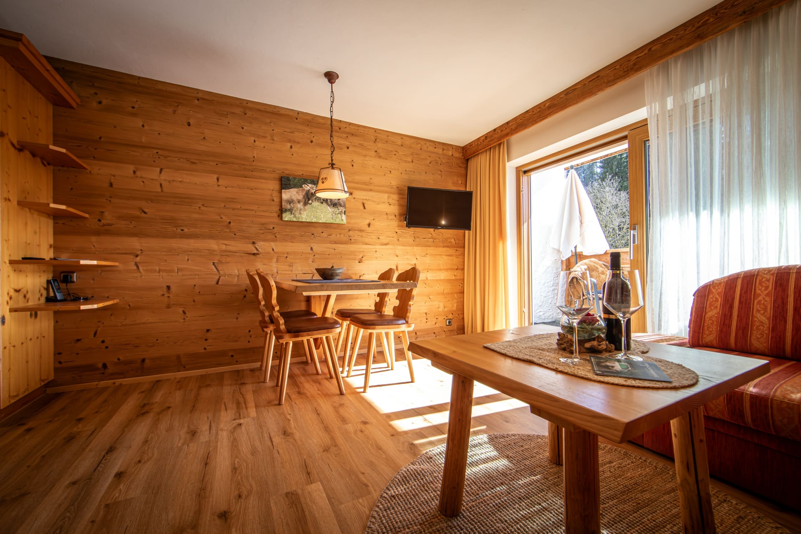 Die Einraum-Ferienwohnungen Studio Natur mit 35qm designed aus heimischen Naturhölzern im Alpinen Flair oder gediegenem Landhaus-Charme bieten einen Gegenpol zur schnelllebigen Alltagswelt. Der kombinierte Wohnschlafraum mit Doppelbett ist ideal für einen Aufenthalt zu zweit. Eine gemütliches Sofa lädt zum Kuscheln und Tagträumen ein. Bei Bedarf kann sie auch als zusätzliches Bett für zwei Personen umfunktioniert werden. Von Balkon oder Terrasse aus eröffnet sich das eindrucksvolle Allgäuer Berg-Panorama nach Süden mit Blick in die Oberstdorfer und Kleinwalsertaler Bergwelt. Die kleine aber feine Küchenzeile ist für eine 4 Personen Belegung ausgestattet. Das Badezimmer beinhaltet Dusche und WC.