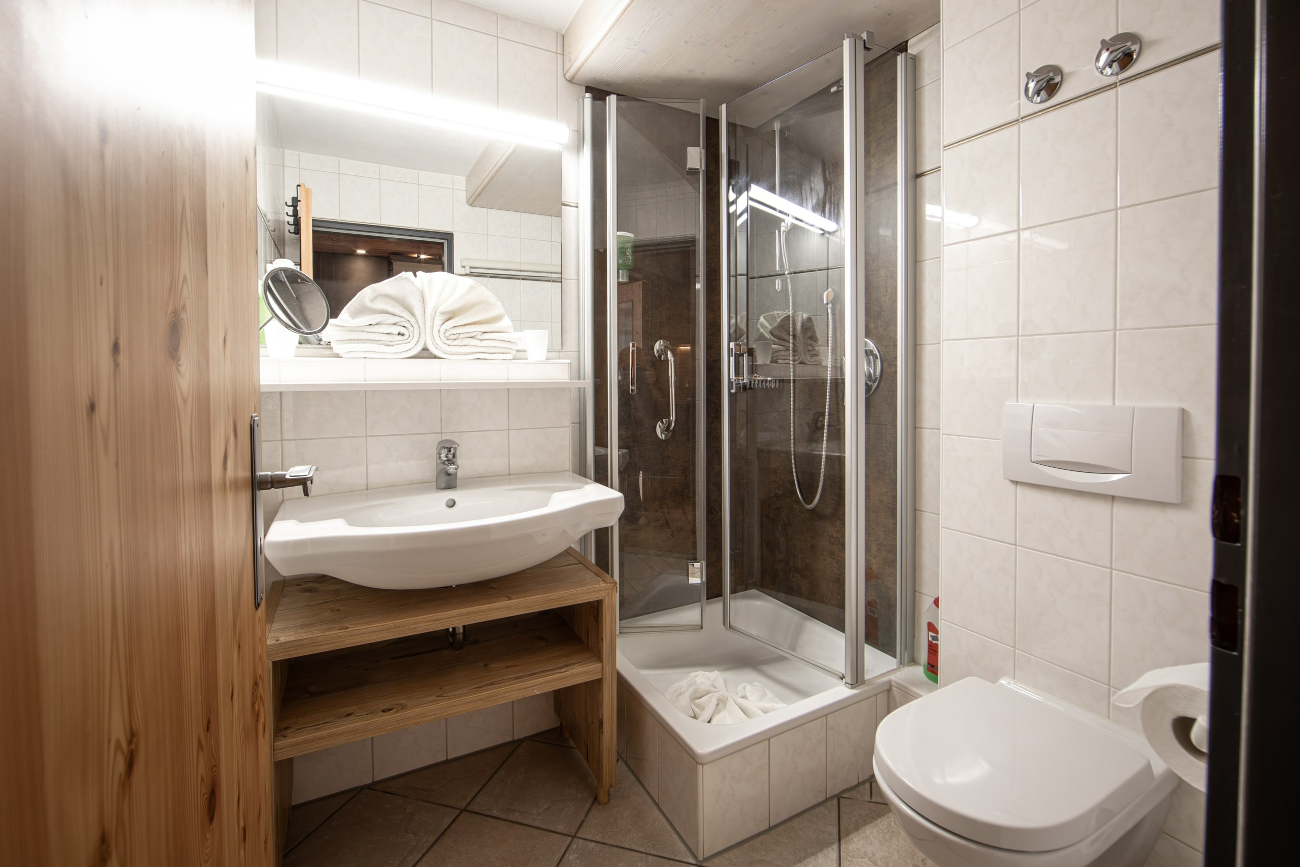 Dusche, WC, Fön, Handtücher, Bademantel für Erwachsene, Seife, Shampoo